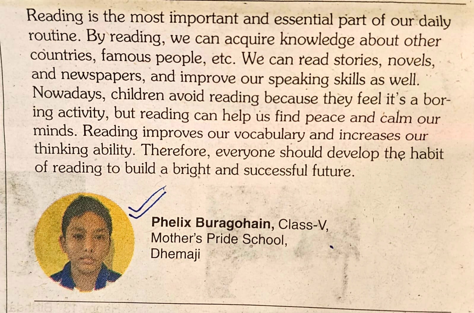 Student Publications Student Publications Handwritten magazine prepared by Reading Club members (Vol. 2) Handwritten magazine prepared by Reading Club members (Vol. 1) 1st issue of handwritten magazine by Class-III Students Abhineet Dutta Adityam Konch Adrik Handique Aisengfa Phukan Angkita Gogoi Ankur Bikash Buragohain Anushka Das Arnav Buragohain Ayan Konwar Bastav Borpatra Gohain Bidisha Changmai Brishti Das Deproy Gogoi Dhritideepa Dutta Gourab Gogoi Hiranya Buragohain Irene Buragohain Ishan Sonowal Jasritha Gogoi Jit Das Jucheng Phukan Jyotika Konch Kautilya Gogoi Lee Khamseng Buragohain Lucky Deori Mayukh Ranjan Chutia Migom Pegu Murchana Sonowal Muskan Agarwalla Nanif Pegu Parchi Sonowal Perinjyoti Doley Phelix Buragohain Prajakta Das Pranjana Borgohain Purbashree Buragohain Rajnandini Bharali Rishan Phukan Ronit Konwar Sanghamitra Missong Sargam Saurav Borphukan Shikhi Daflari Snigdha Biswakarma